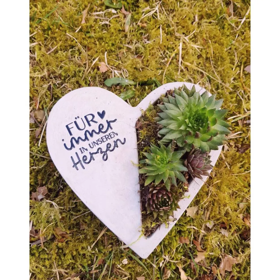 Materialien: Herz aus Gartenbeton, Sempervivum-Arten