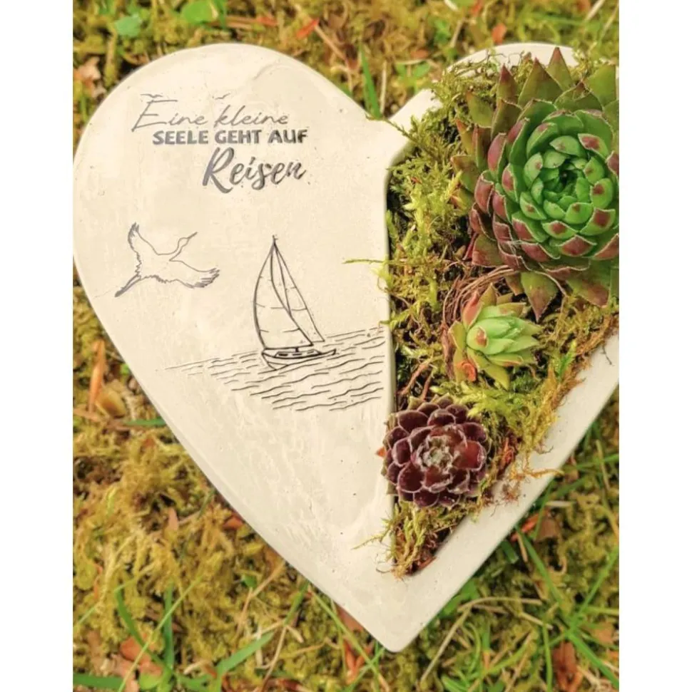 Materialien: Herz aus Gartenbeton, Sempervivum-Arten