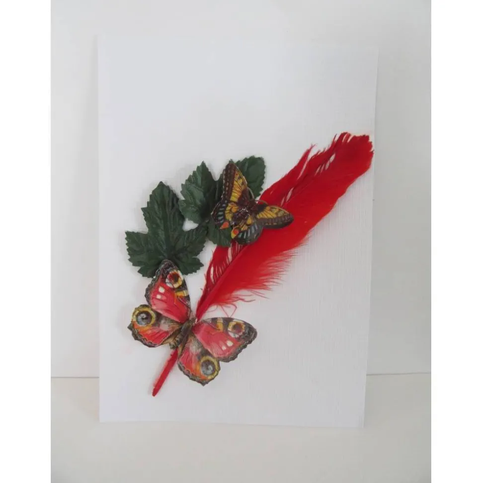 Die Karte ist im 3-D Look gestaltet – die Flügel der Schmetterlinge stehen nach oben, sodass es wirkt, als ob diese gleich wieder wegfliegen würden.