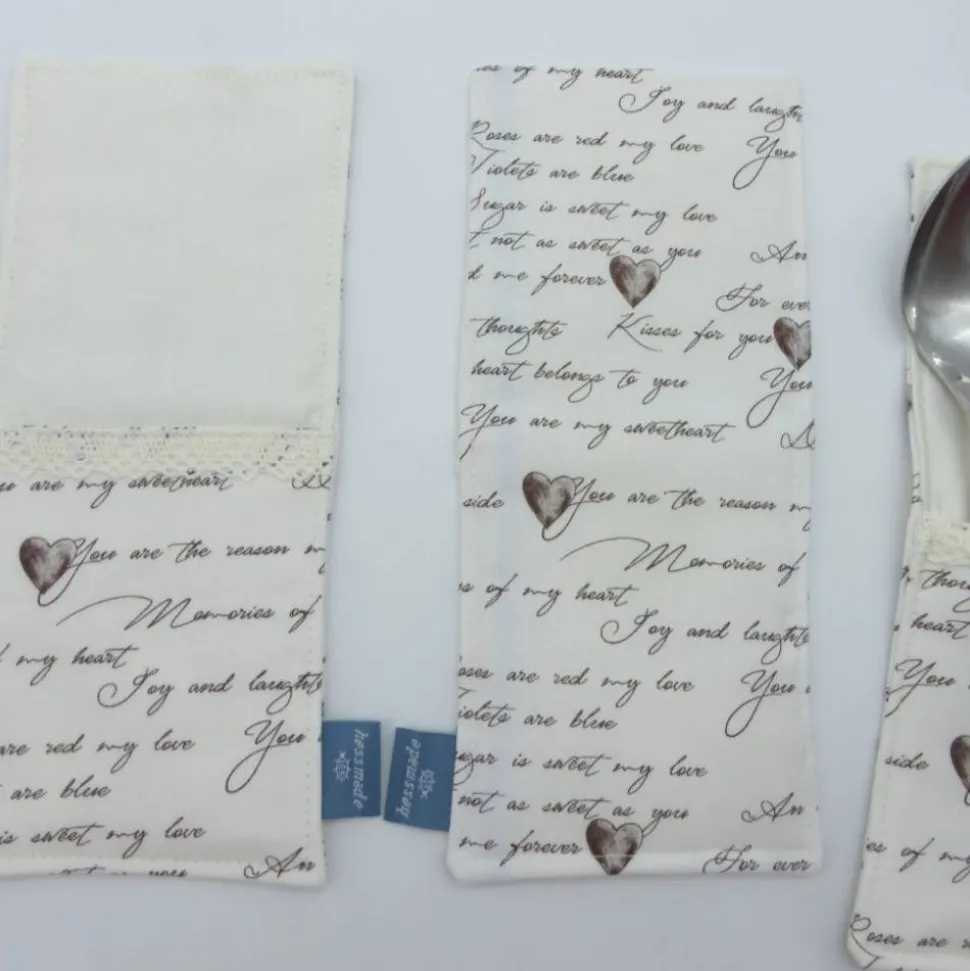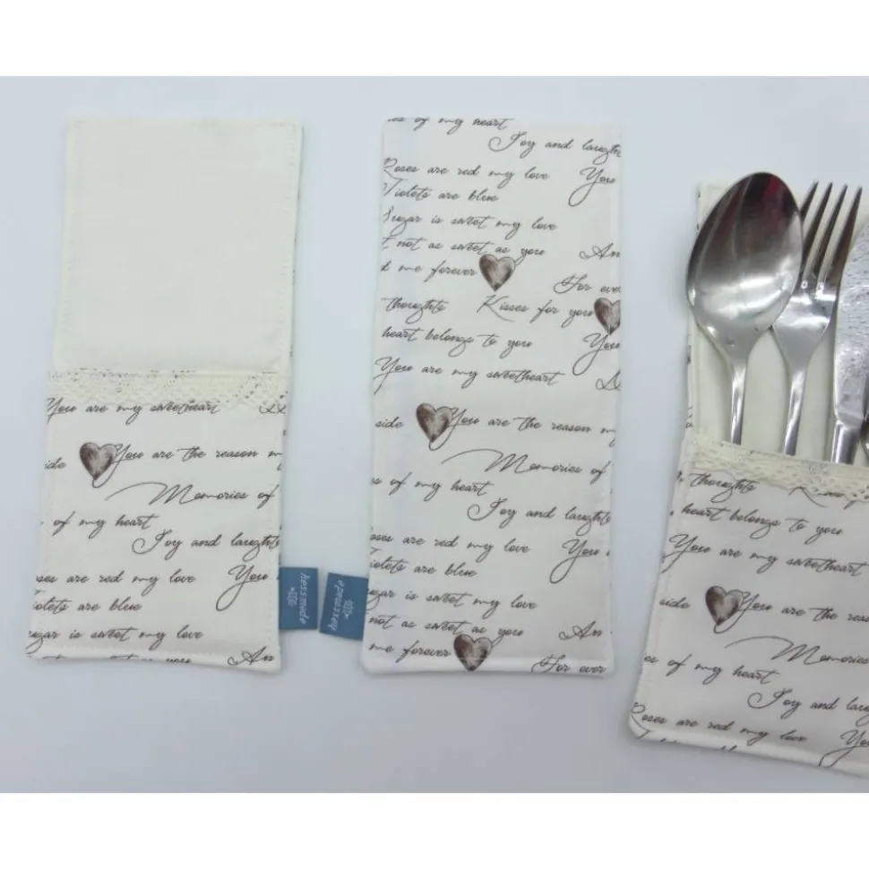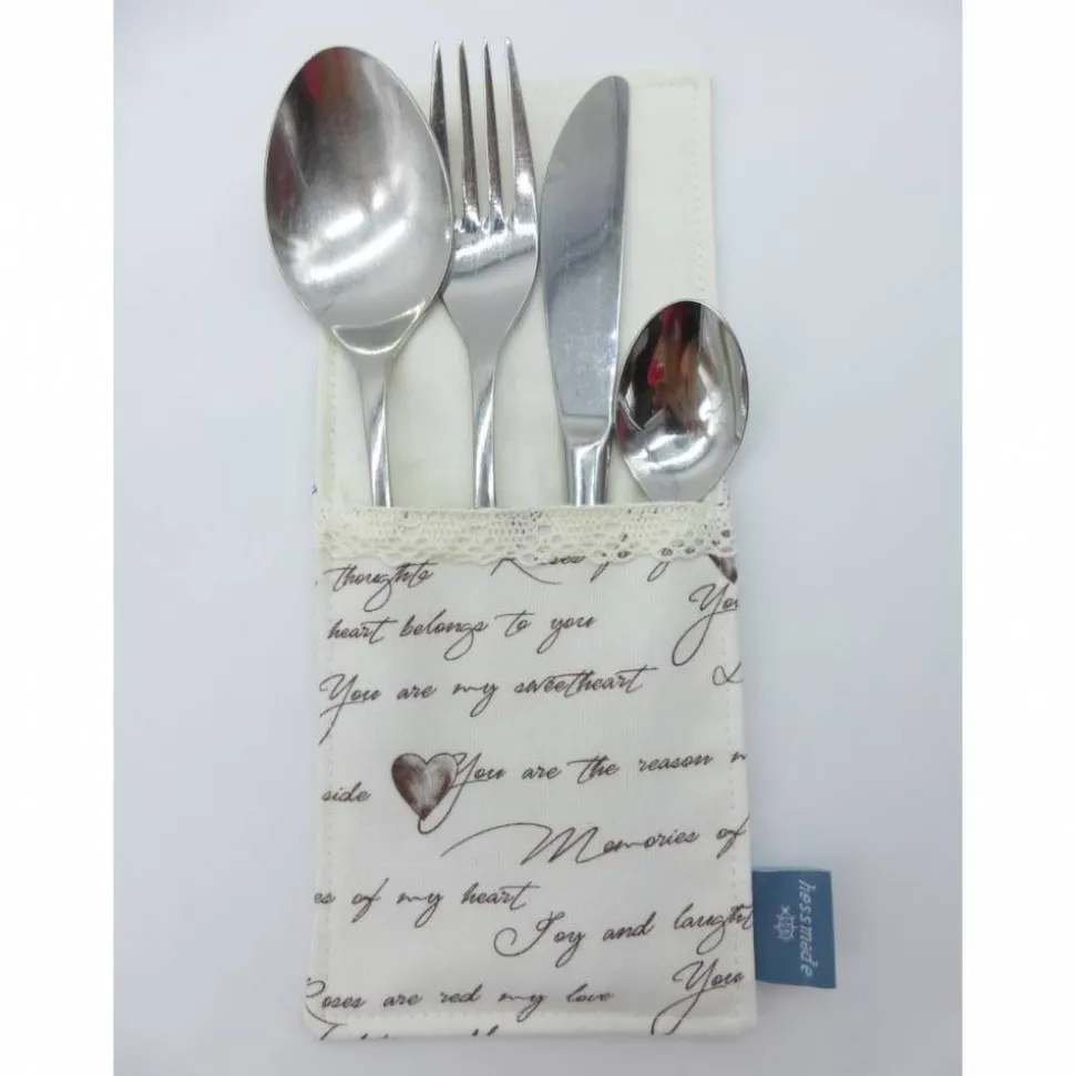 Diese Tasche bietet Platz für 4 Besteckteile und ist eine Zierde für jede Tafel, auch für die Hochzeitstafel.