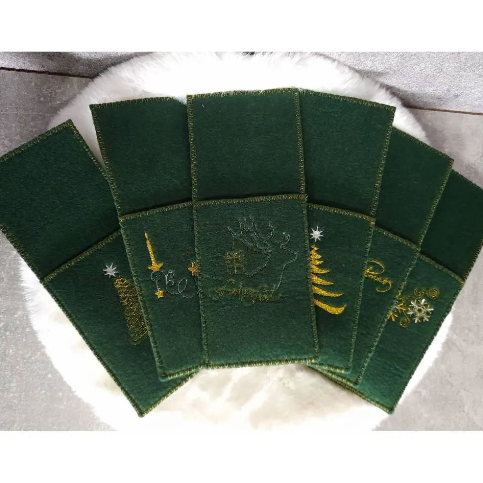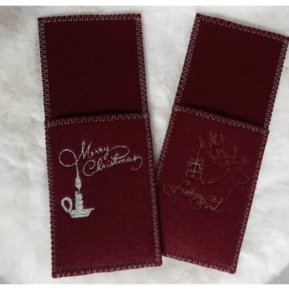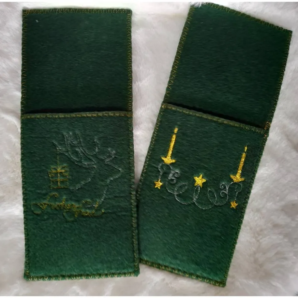 Ich biete Euch hier schöne Bestecktaschen mit 6 verschiedenen, weihnachtlichen Stickerreien im 6er Set an.