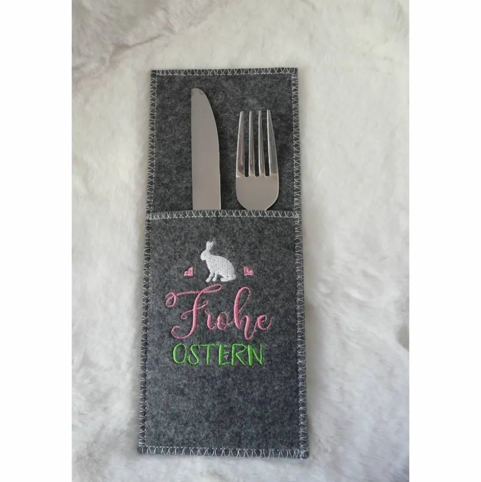 Jede Bestecktasche ist mit aufwendiger Stickerei verziert – ein echter Blickfang für deine Osterdekoration. Überzeuge deine Gäste mit liebevoll handgefertigten Accessoires, die deinen Ostertisch einzigartig machen!