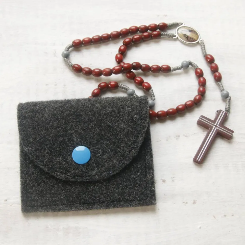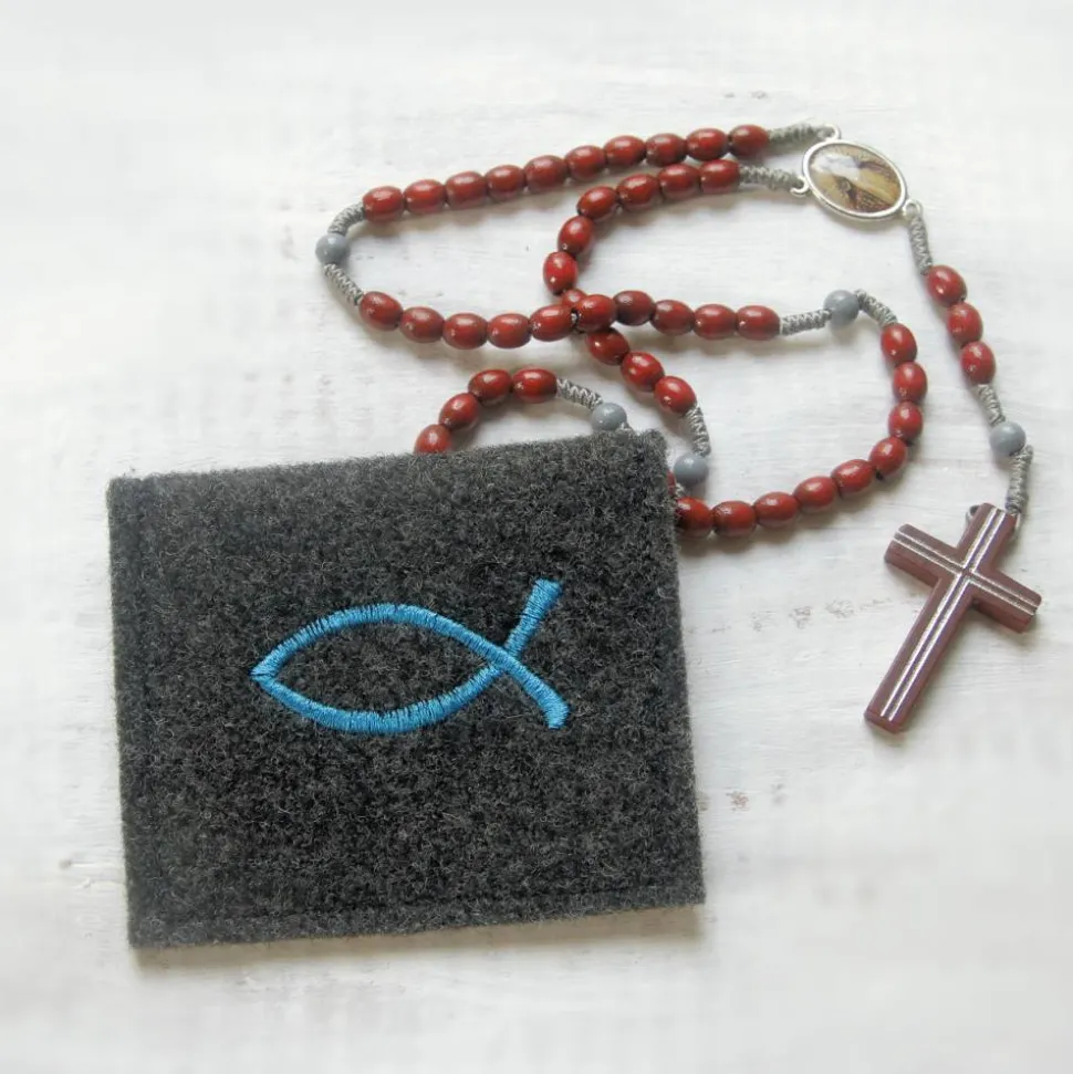 Im Gegensatz zu anderen Produkten verwende ich nicht einfach nur Folie, sondern besticke die Rosenkranztasche mit hochwertigem Stickgarn. Dadurch ist sie nicht nur schön farbenfroh, sondern auch sehr robust und langlebig.