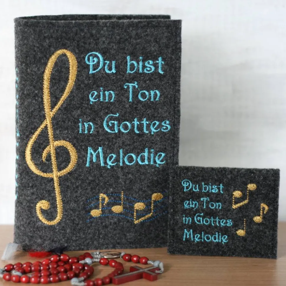 Bestickte Rosenkranztasche aus Filz *Motiv Du bist ein Ton in Gottes Melodie 1 *individuell angefertigt