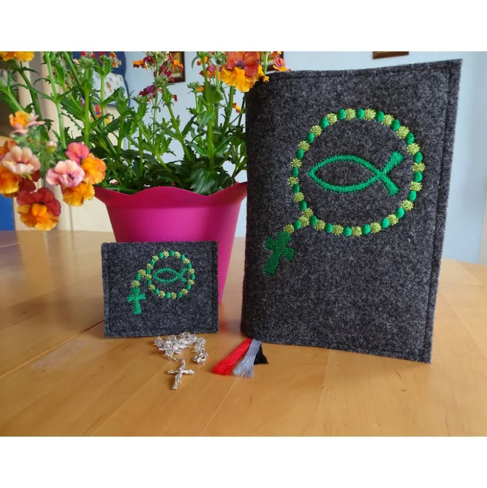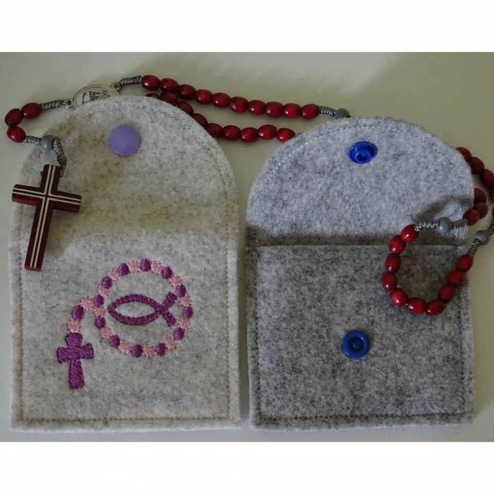 Bestickte Rosenkranztasche aus Filz *Motiv Rosenkranz *individuell angefertigt