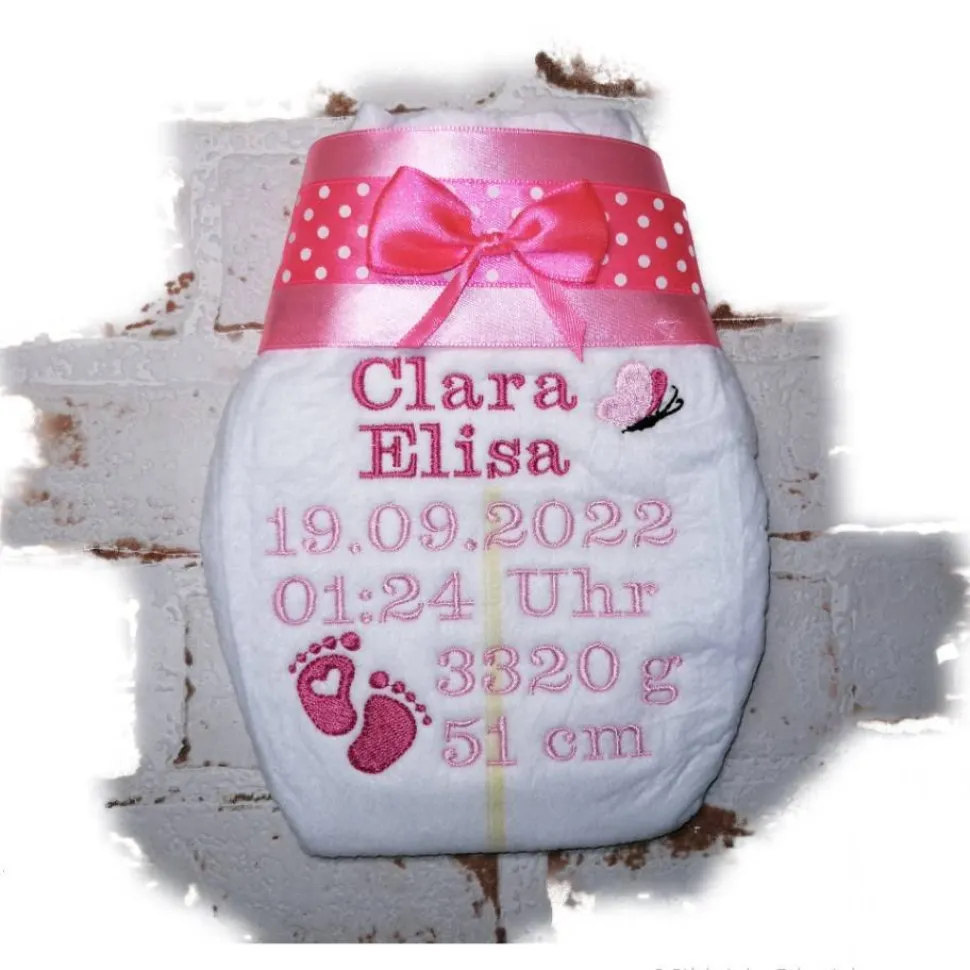 Dieses Produkt steht in keiner Verbindung mit Procter & Gamble. Procter & Gamble übernimmt keine Haftung für die bestickten Windeln.