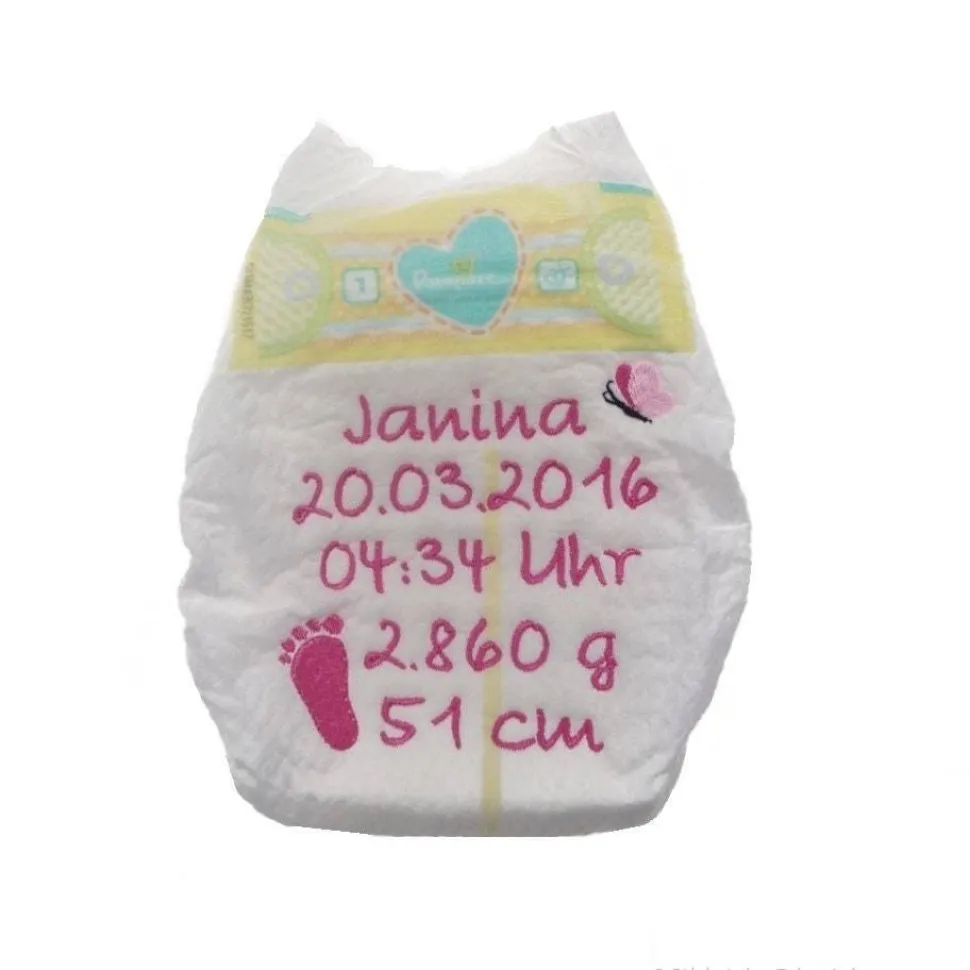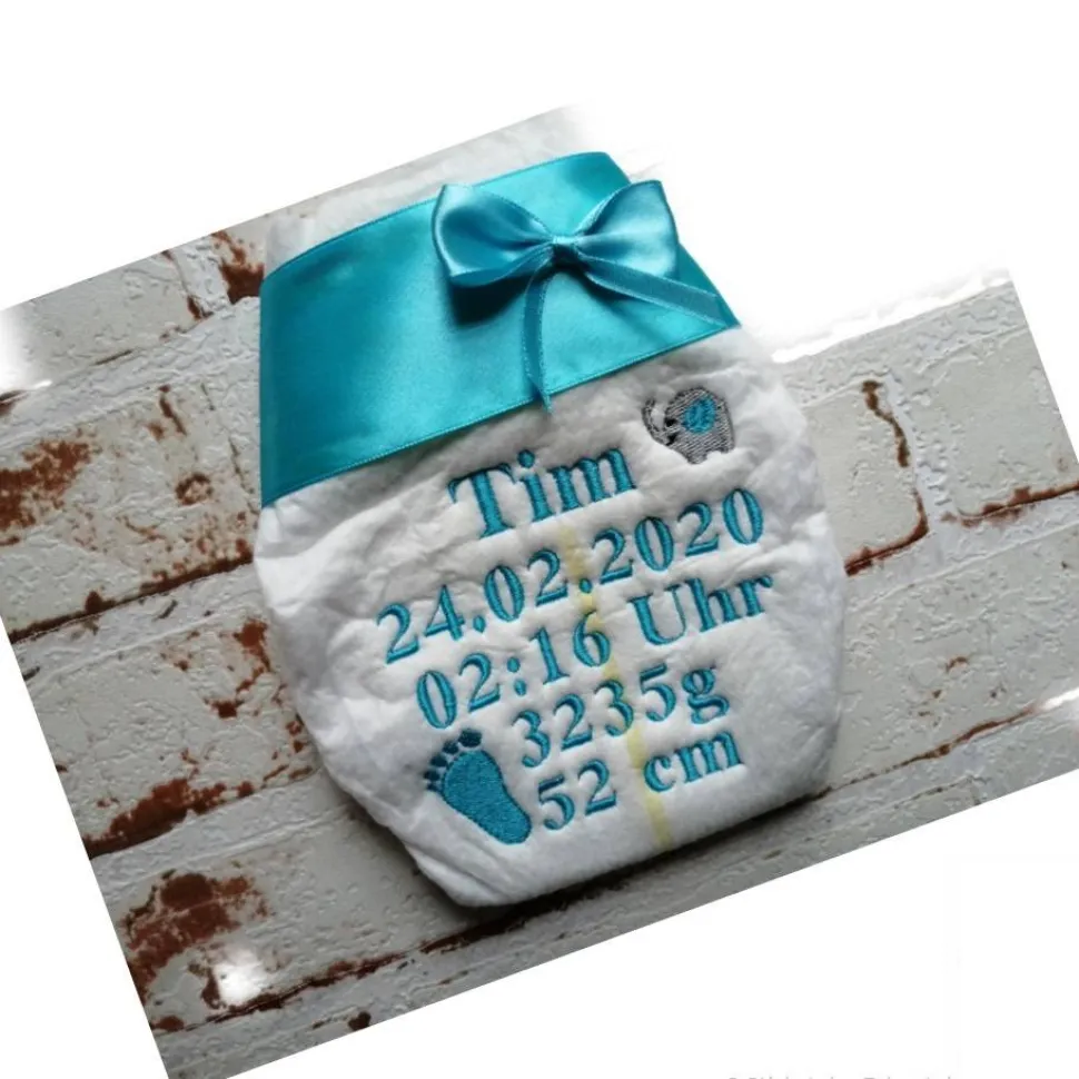 Dieses Produkt steht in keiner Verbindung mit Procter & Gamble. Procter & Gamble übernimmt keine Haftung für die bestickten Windeln.