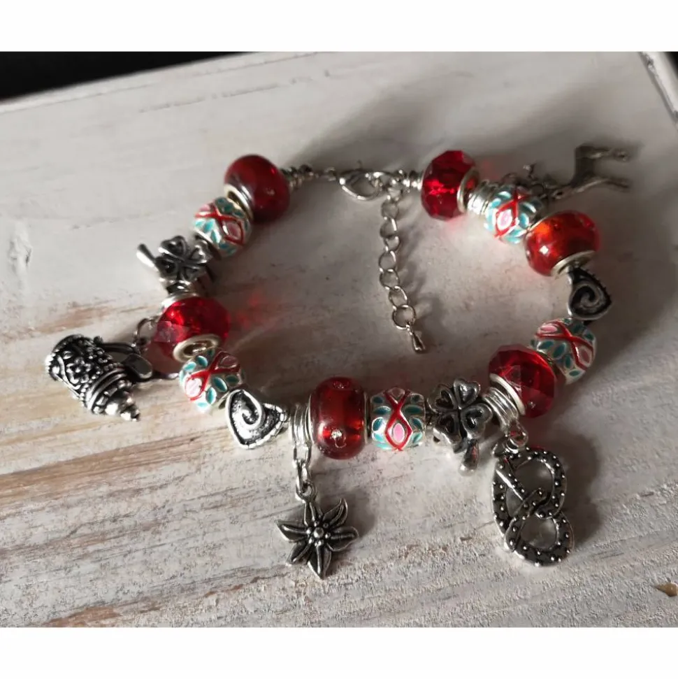 Farbe des Armbandes: silber-rot-türkis