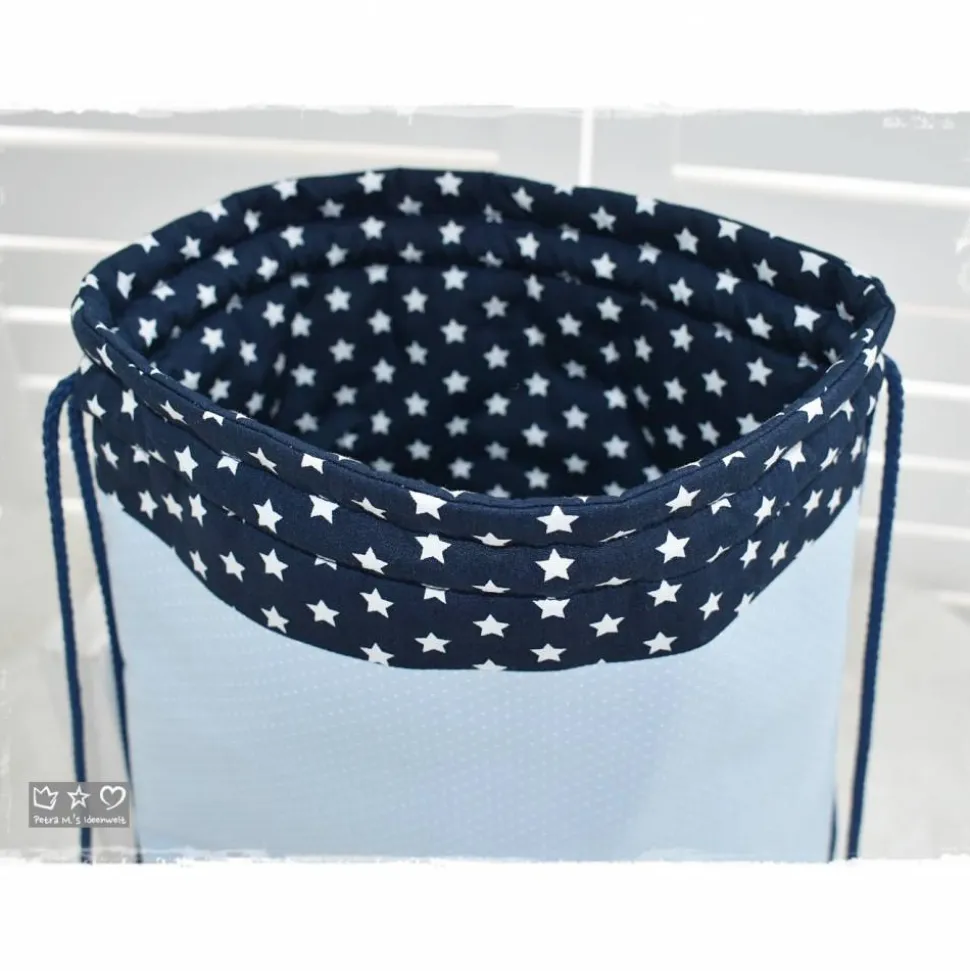 -Außenseite: dunkelblau mit weißen Sternen und hellblau mit weißen Pünktchen;