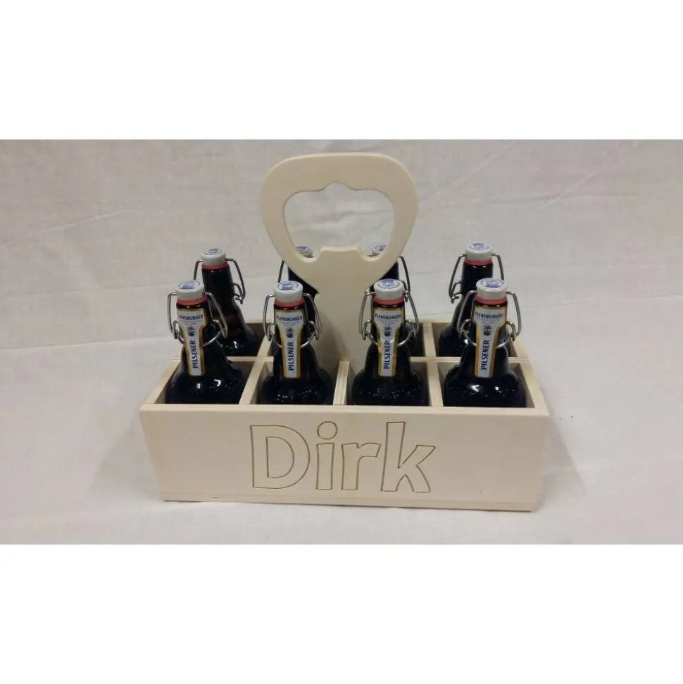 8-fach Bierträger aus 10mm starkem Pappel-Sperrholz gefertigt. Geeignet für 0,33er und 0,5er Longneck-Flaschen, ebenso für 0,33er Steinis.