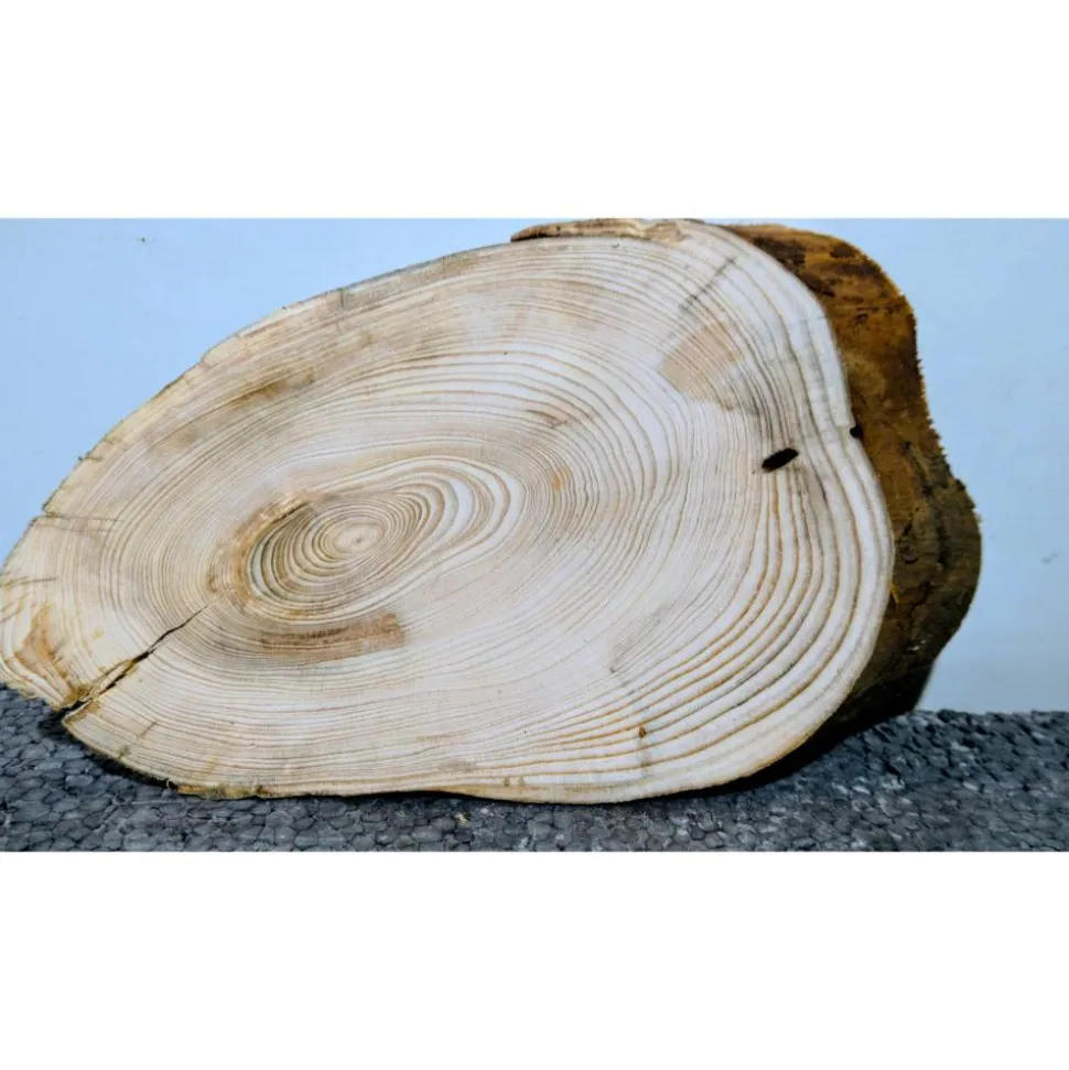 Maße: ca. Durchmesser mit Baumkanten gemessen: 10- 21,5 cm x Stärke: 2,5 cm.