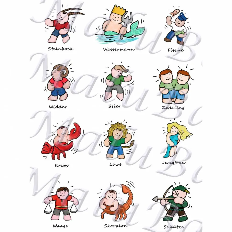 Wähle das Gewünschte Sternzeichen und teile uns die gewünschten Daten, die auf das Bild sollen, bei der Bestellung mit.