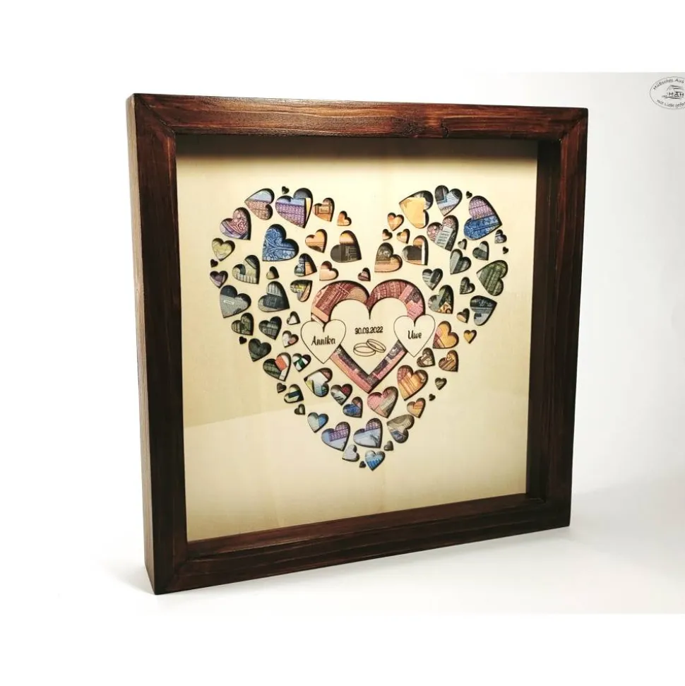 Mit diesem personalisierten Bilderrahmen schenken Sie nicht nur ein Geldgeschenk sondern ebenfalls eine Erinnerung für die Ewigkeit. Wenn das Geld entnommen wurde, kann z.B. ein handelsüblicher Tonkarton in Wunschfarbe hinten eingelegt werden und man bekommt ein schönes Andenken.