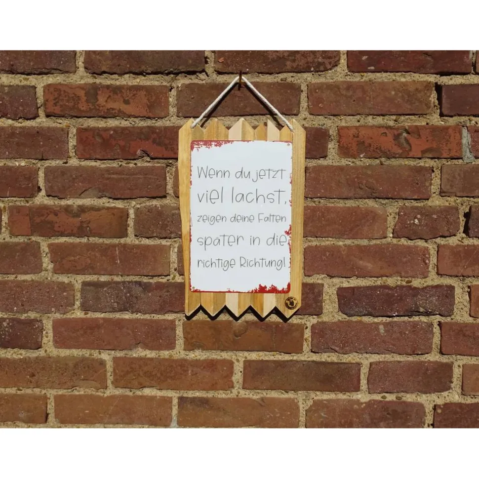 Das verwendete Altholz kann kleine Unebenheiten,Risse oder Farbabweichungen aufweisen – genau das macht den besonderenVintage-Charakter aus und ist ausdrücklich gewollt. Das Blechschild wirdsorgfältig auf dem Holz befestigt und ist sofort bereit zum Aufhängen.