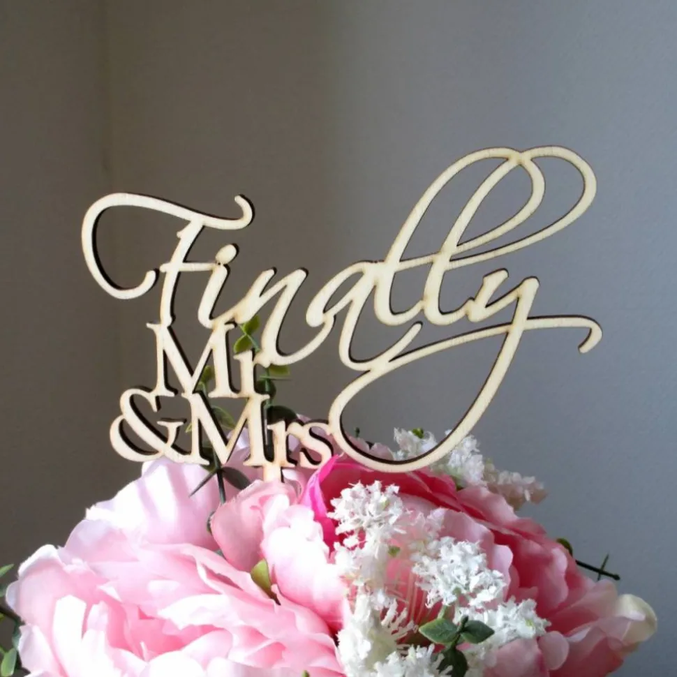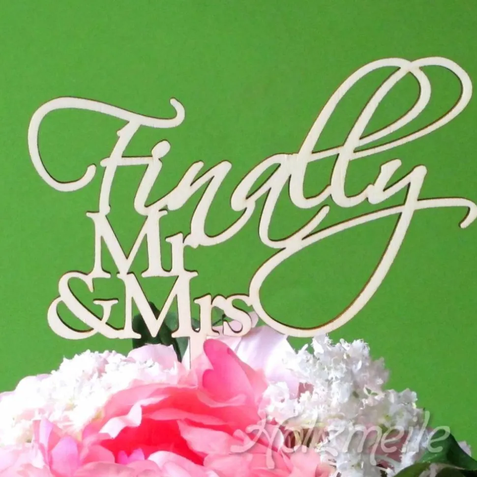 Dieser Schriftzug „Finally Mr & Mrs“ ist als Blumen- oder Tortenstecker zu verwenden und auf Ihrer Hochzeit ein absolut exklusiver Hingucker, bei dem Ihren Gästen gleich ganz warm ums Herz wird!