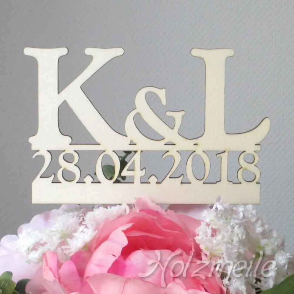 Blumen- / Tortenstecker Initialen & Datum aus Holz, Caketopper, Tortentopper, Blumenstecker, Blumengesteck