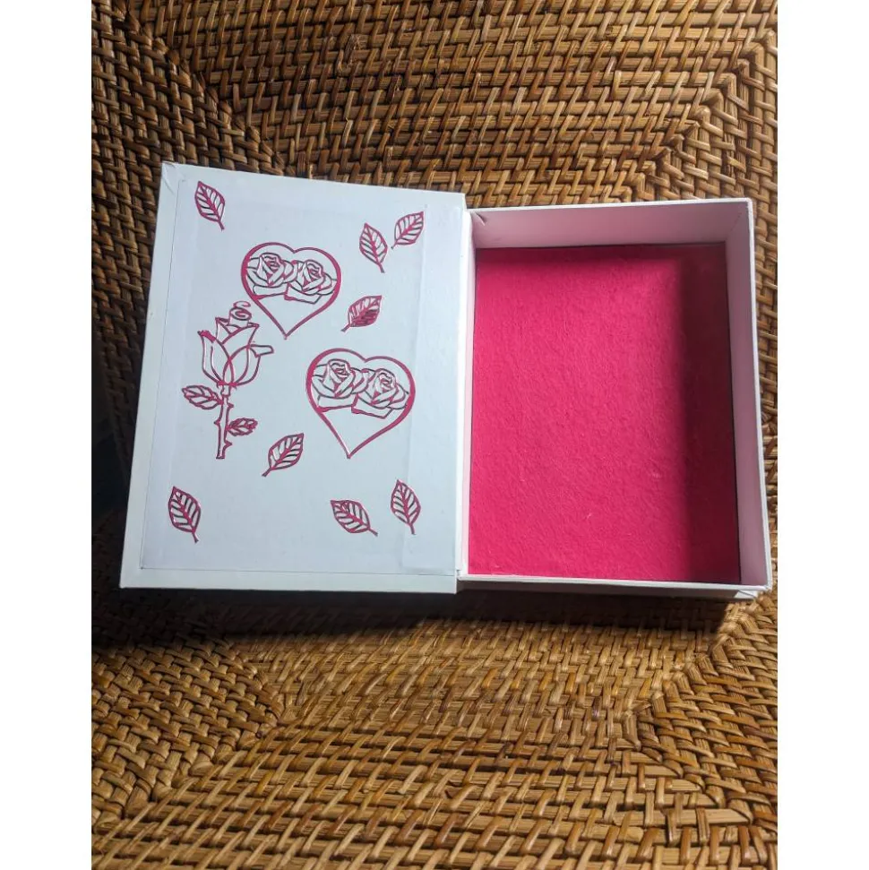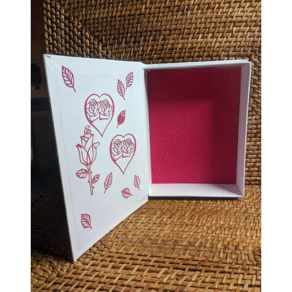 Die Klappdeckel-Box ist aus Karton.