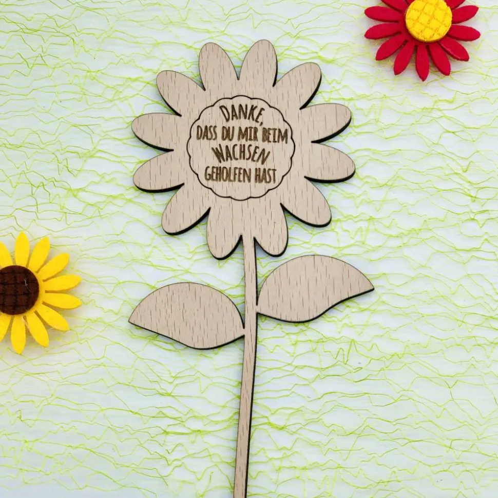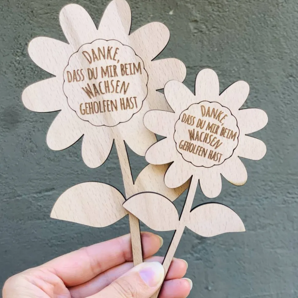 Mit unserem Blumenstecker aus Holz machst du garantiert nichts falsch – sei es für Lehrer, Erzieher, Trainer oder einfach nur als liebevolles Geschenk an Freunde oder Familie.