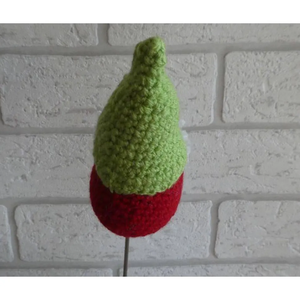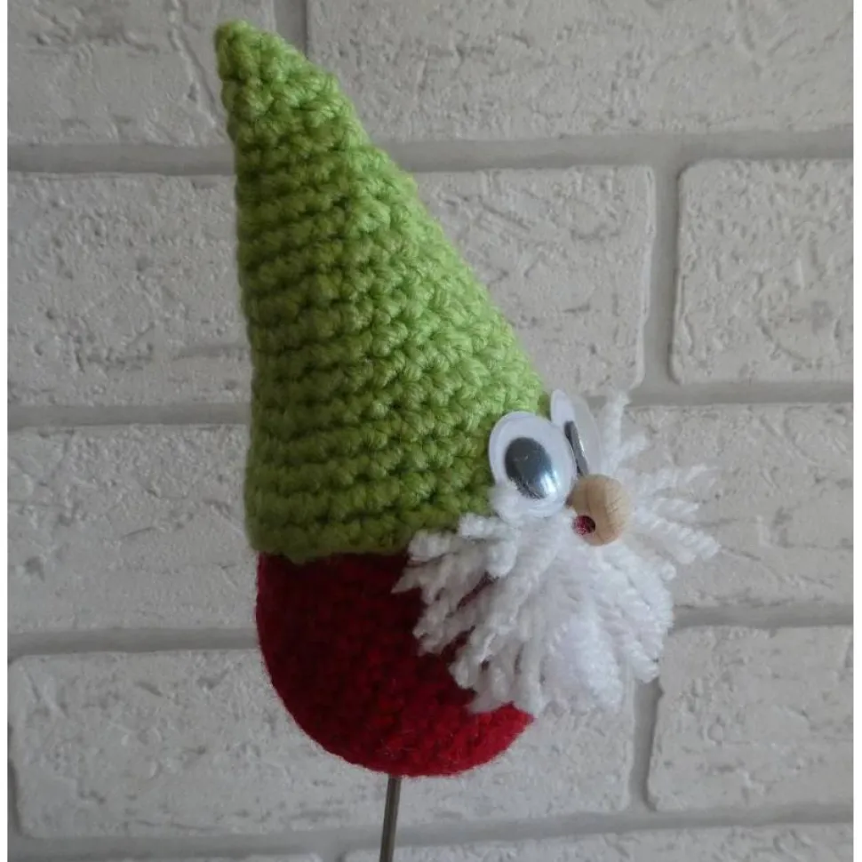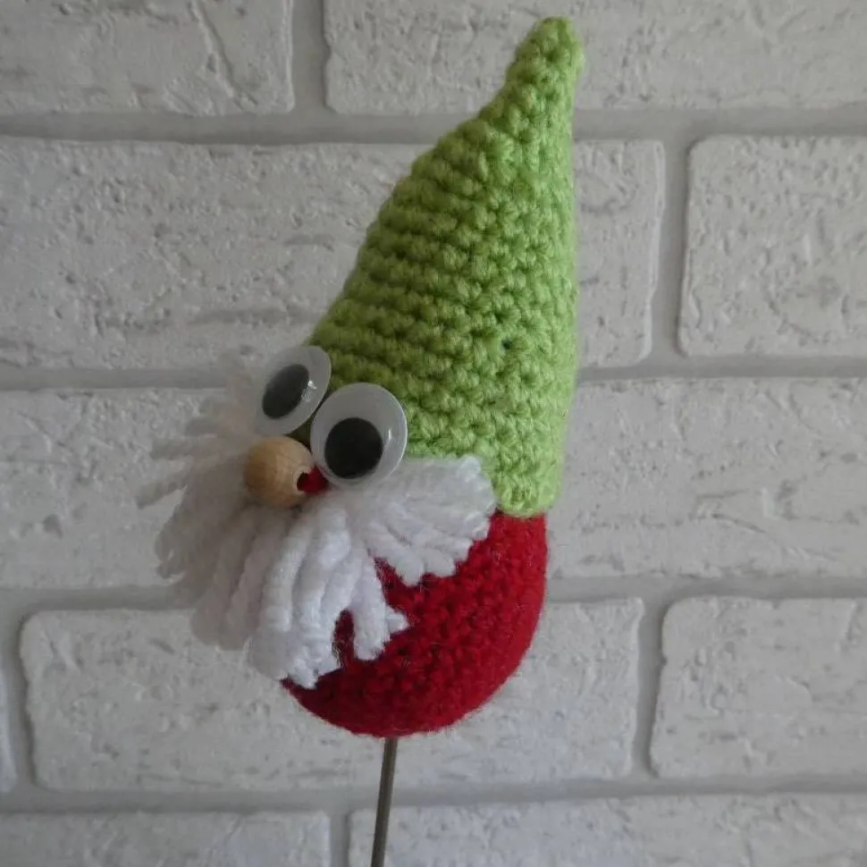 Der Stecker besteht aus einem, mit Wolle, umhäkelten Styroporei. Der Stab ist aus Metall