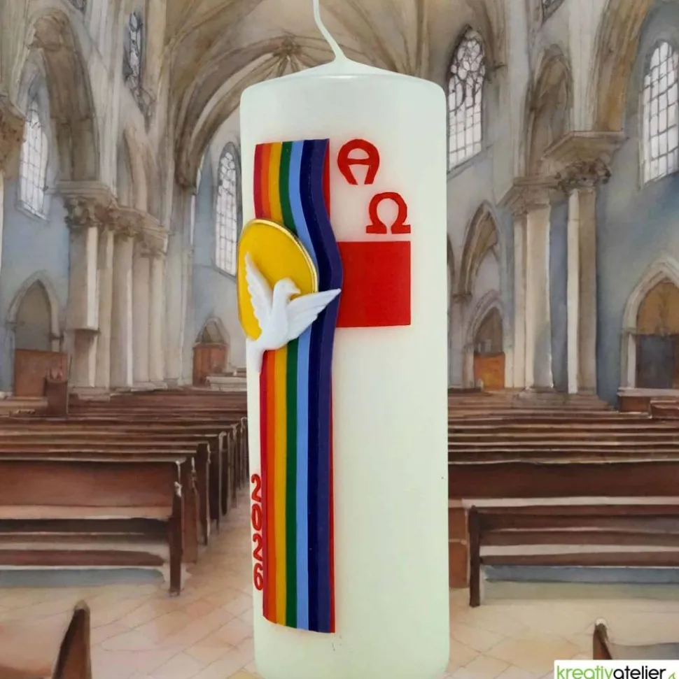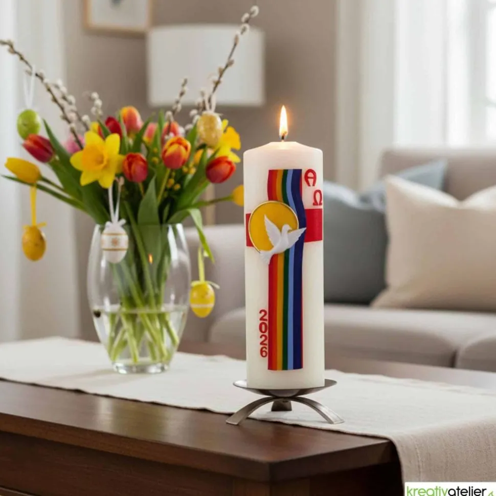 Die Osterkerze mit Kreuz, Alpha und Omega ist ein Symbol des Glaubens, an die Auferstehung Jesu und dessen Bedeutung für unser ewiges Leben. Das Kreuz erinnert an das Leiden und den Tod Jesu und steht für die Opferbereitschaft und die Liebe, die er uns gezeigt hat. Alpha und Omega sind die ersten und letzten Buchstaben des griechischen Alphabets und symbolisieren den Anfang und das Ende, den Beginn eines neuen Lebens. Diese Kerze ist eine wertvolle Ergänzung zur Feier des Osterfestes und eine Erinnerung an die Bedeutung dieses Ereignisses.