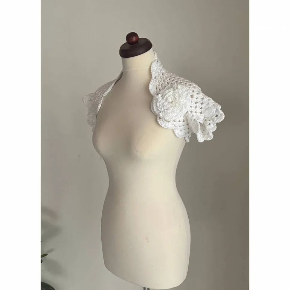 Sehr schickes Bolero Jäckchen in weiss.Gehäkelt ,Handarbeit.Größe 36/38. Bei weiteren Größen oder Farben einfach anschreiben.Material 100% Baumwolle.