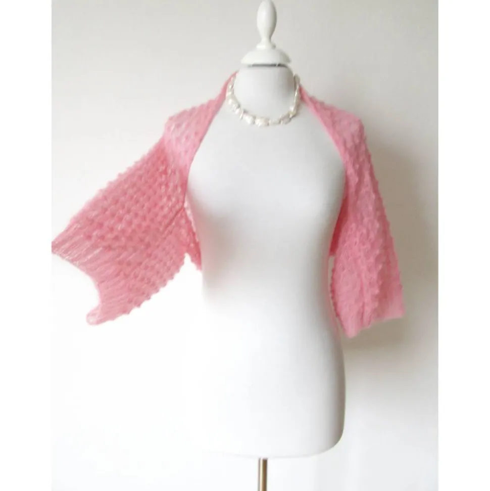 Der anmutige Shrug ist mit einem wunderschönen Spitzenmuster gestrickt. Das Braut Accessoire bedeckt Rückenpartie und die Schultern und ergänzt das Braut-Outfit.