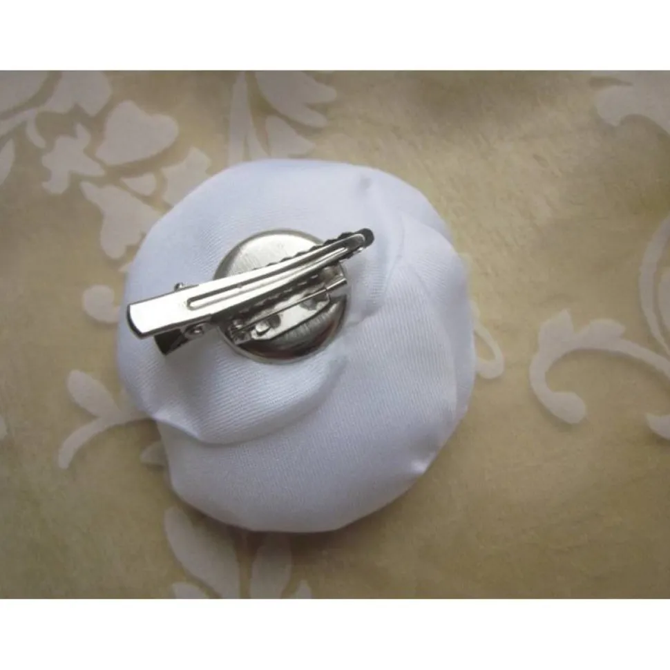 Die Brosche und Haarklammer bestehen aus hochwertigem, schimmerndem weißen Satin, der sanft im Licht spielt und Ihrem Look eine anmutige Note verleiht. In der Mitte der Blüte erstrahlt eine zarte rosafarbene Satinblüte, die das Gesamtbild harmonisch abrundet und einen verspielten Akzent setzt.