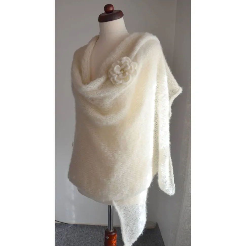 Sehr fein gearbeitet und leicht. Diese wunderschöne Stola wird einfach um die Schulter gelegt. ca. 60 cm x 170 cm groß.