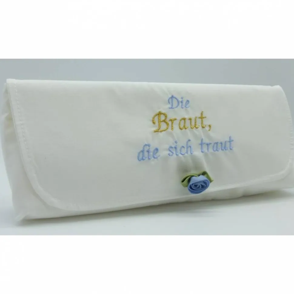 Die Brauttasche wird mit Magnetdruckknopf geschlossen.