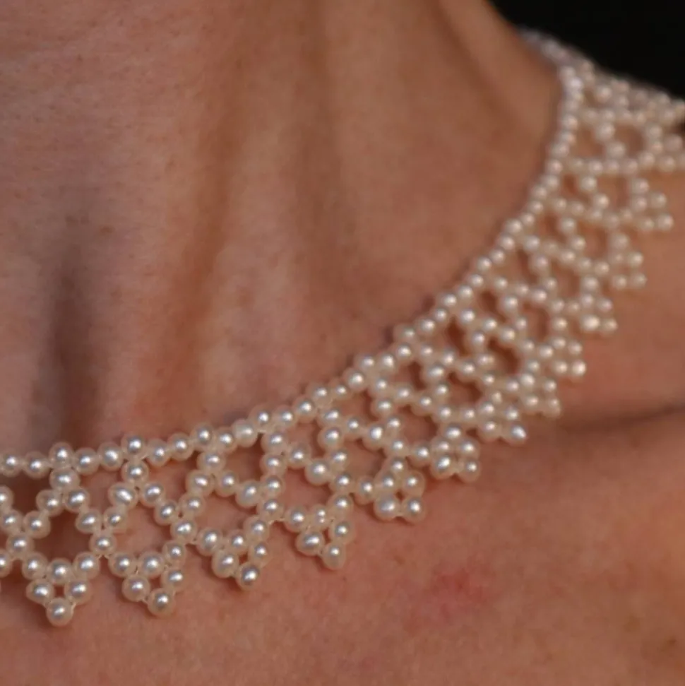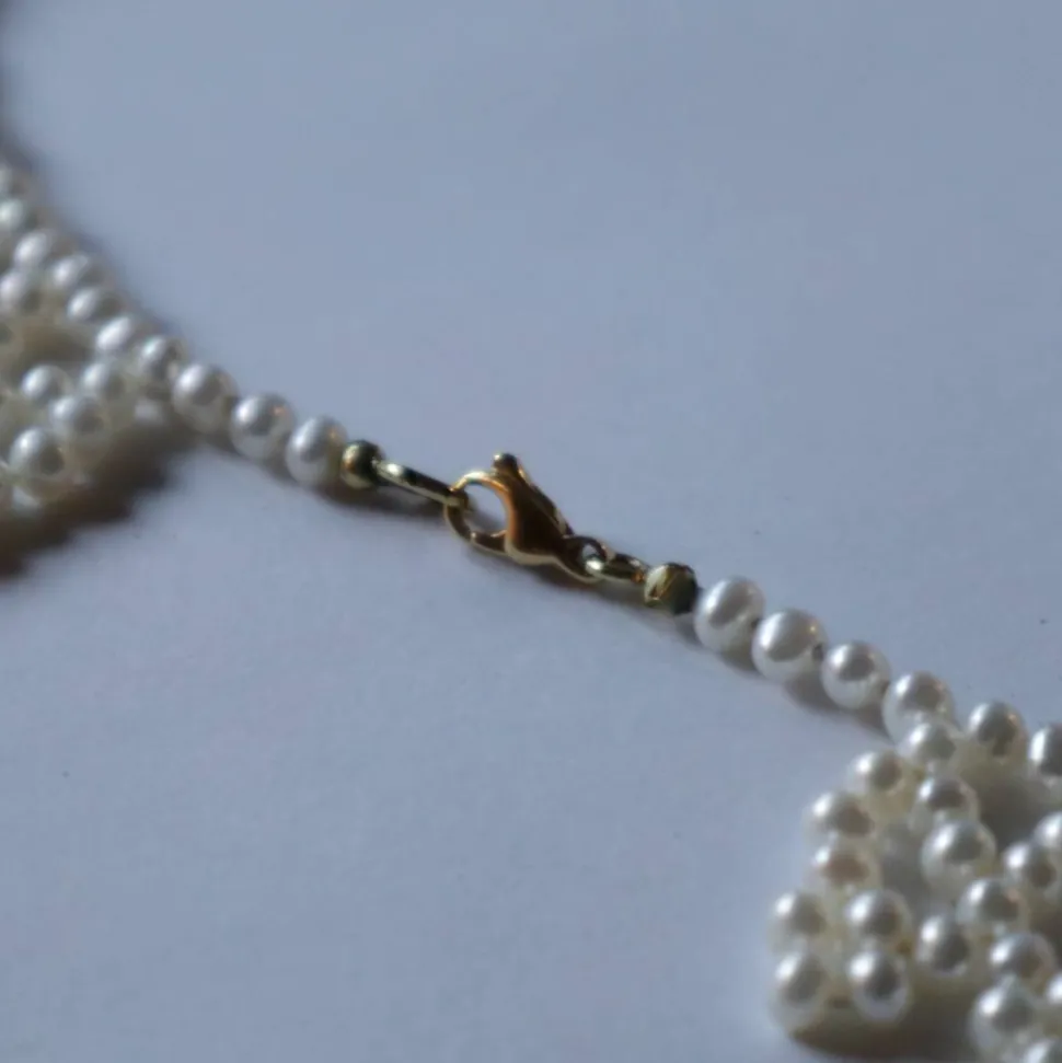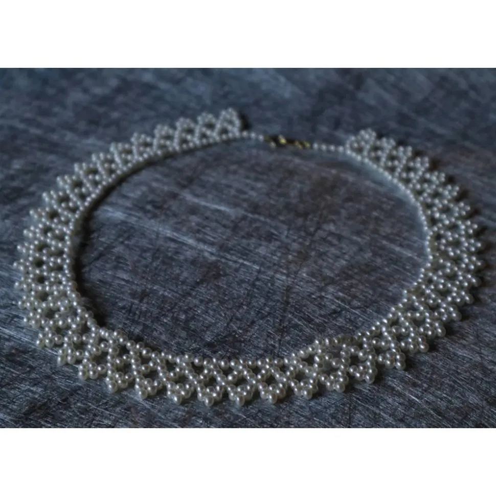 Am Hals schmiegt sich das Collier prima an, soll es auf glatter Fläche liegen entstehen kleine Wellen wie auf dem Foto.