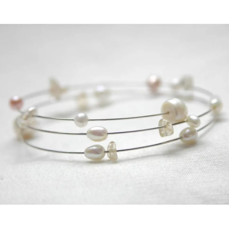 Ein passendes Armband aus memory wire ergänzt dieses Ensemble, ist leicht anzuziehen, verändert nicht die ursprüngliche Form und kann auch prima alleine getragen werden. Das gibt es im Durchmesser 5,5 cm, 6 cm, 6,5 cm und 7 cm. Meßt Euer Handgelenk aus, teilt die Summe durch 3, zieht nochmal 10% ab, dann habt Ihr den benötigten Durchmesser. Teilt ihn bei der Bestellung mir bitte mit.