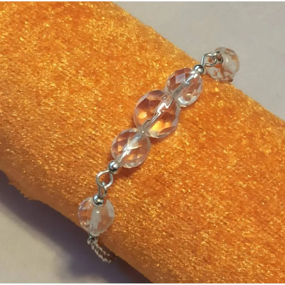 Entdecke das handgefertigte Brautschmuck-Set aus Rückenkette, Armband und Ohrringen mit facettierten böhmischen Glasperlen in kristallklar/transparent und indivudualisierbar