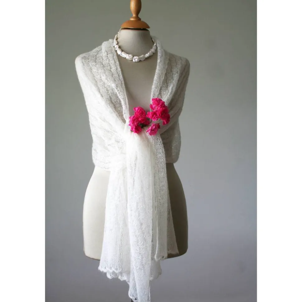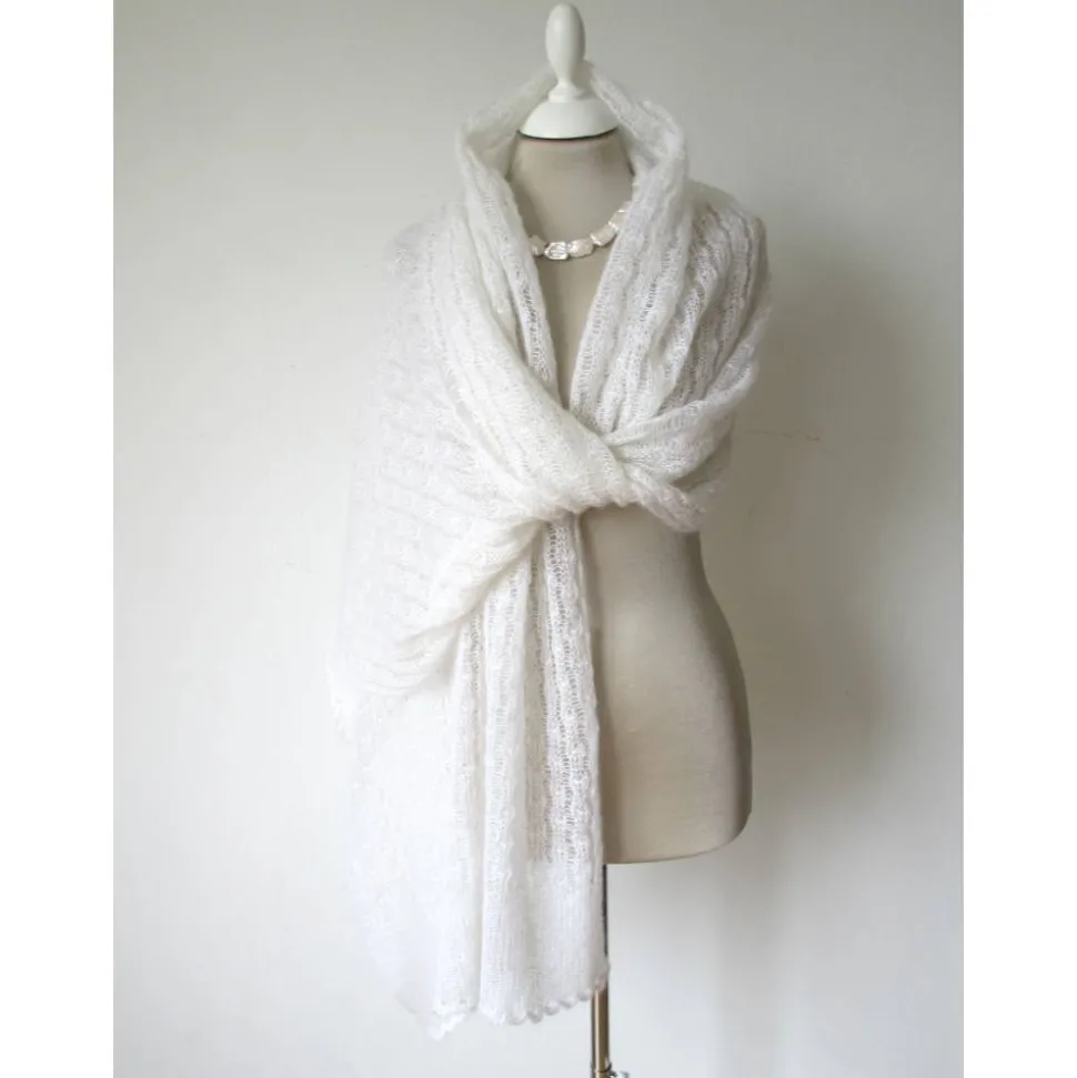 Lace-artig gestrickte Hochzeits- und Brautstola aus italienischem Premium-Garn in Weiß.