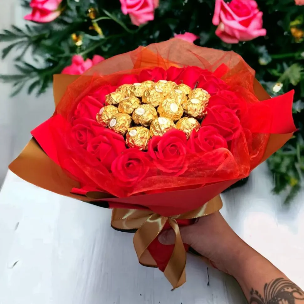 Unser exklusiver Hochzeitsstrauß, gefertigt aus köstlichen Ferrero Rocher Pralinen und eleganten Seifenrosen, ist eine wahre Augenweide. Die handgefertigten roten Seifenrosen verleihen dem Strauß eine romantische Note, während die Ferrero Rocher Pralinen für einen Hauch von Luxus und Genuss sorgen. Dieser einzigartige Brautstrauß ist nicht nur eine atemberaubende Ergänzung zu Ihrer Hochzeit, sondern auch eine süße Überraschung für den Gaumen. Feiern Sie Ihren großen Tag mit diesem kunstvollen Meisterwerk, das Liebe und Genuss perfekt vereint. …………………………………………………………………………………………………………………………………………………………………………………………………………………………………………………………………………………………………………………………………………………………………………………………………………………………………………………………………………………………………………………………………………………………………………………………………………………………………………………………………………………………………………………………………………………………………………………………………………………………………………………………………………………………………………………………………………………………………………………………………………………