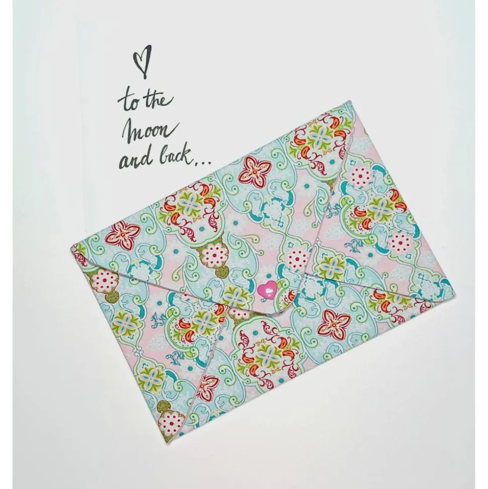 Briefumschlag aus Baumwollstoff mit Camsnap-Verschluss.