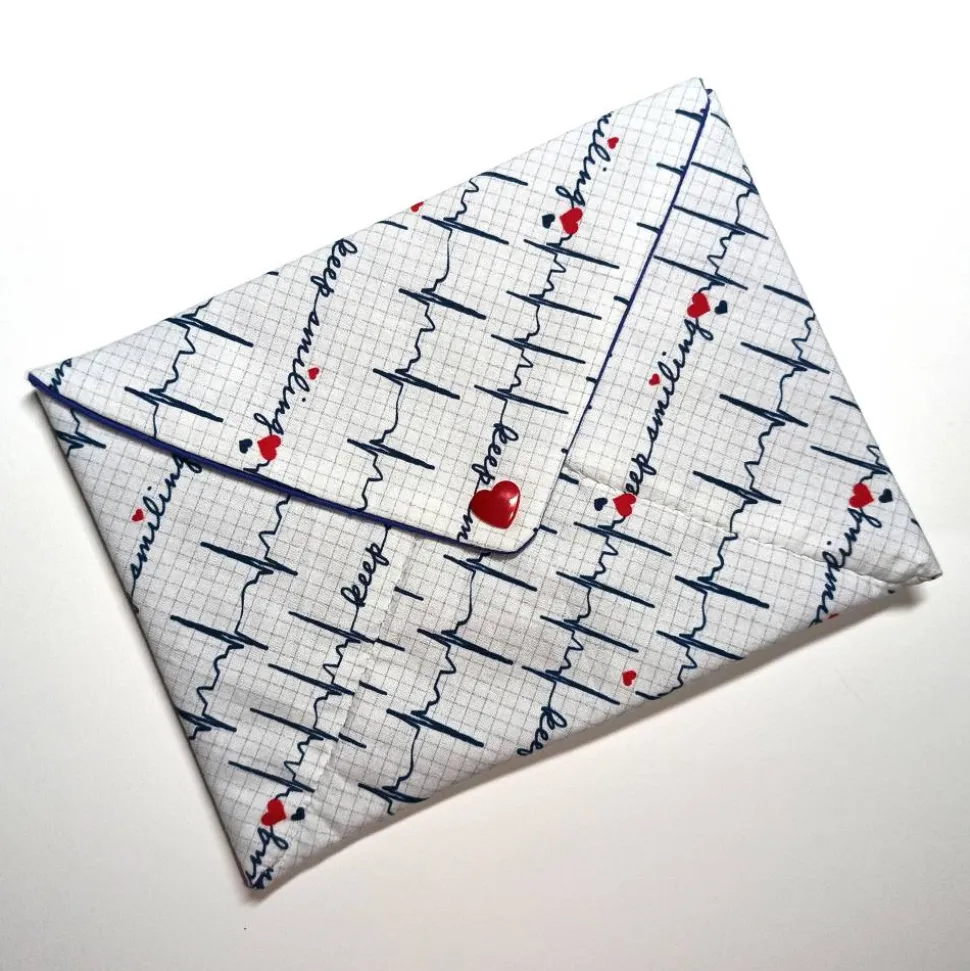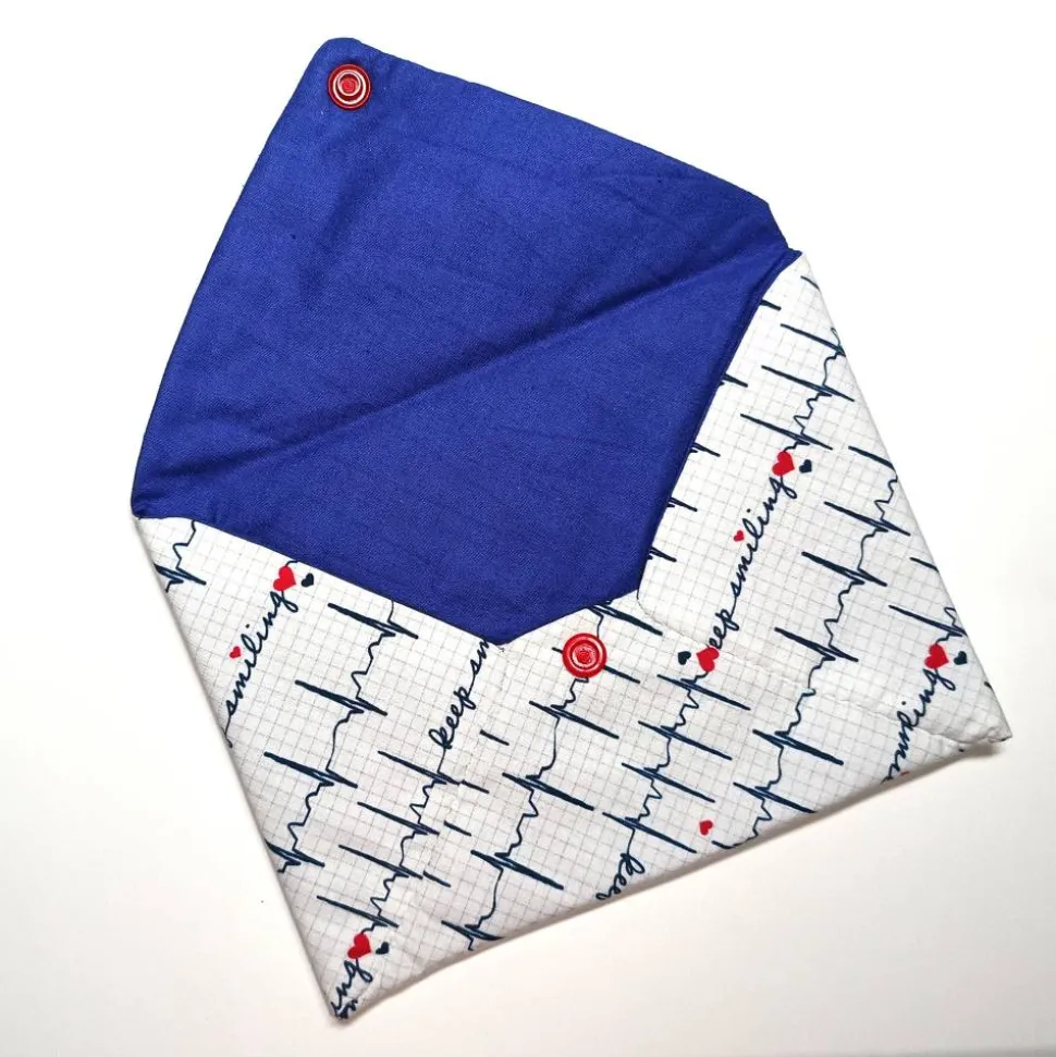 Briefumschlag aus Baumwollstoff mit Camsnap-Verschluss.