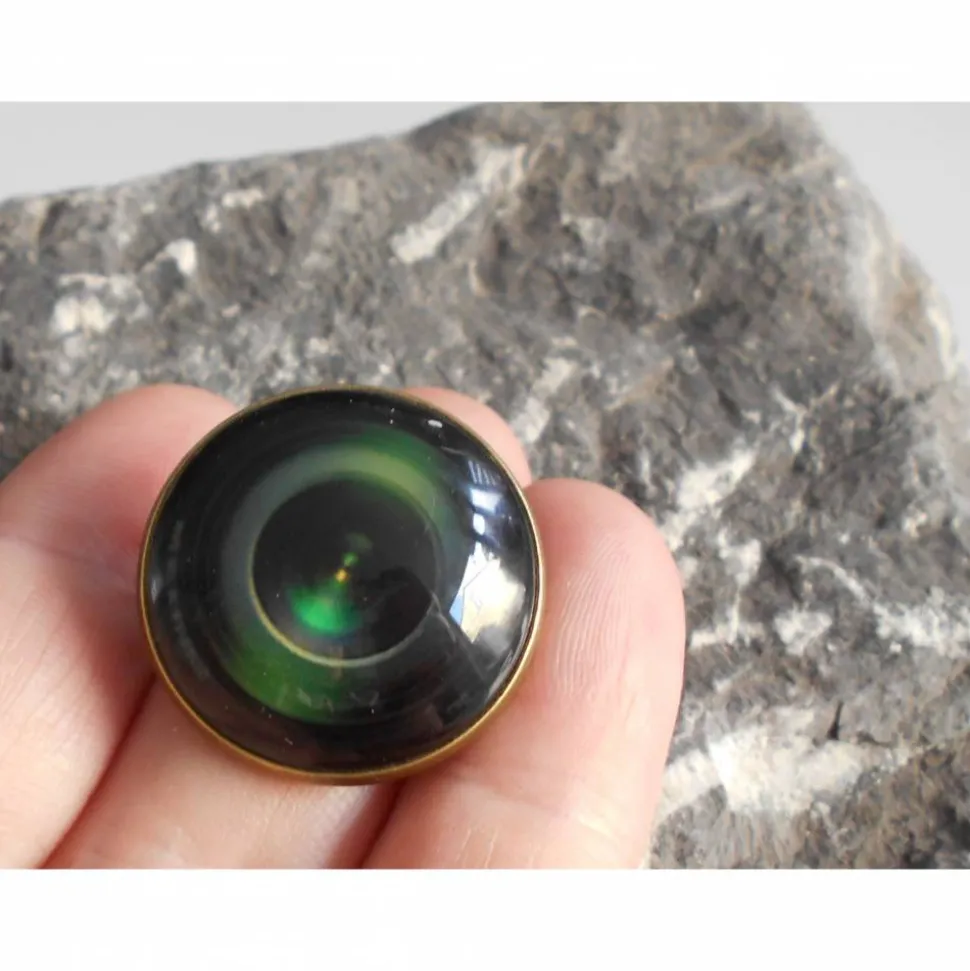 Cabochon ist aus Glas und wird mit einer Broschennadel geschlossen