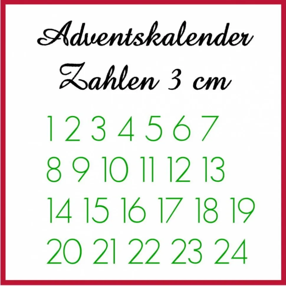 Das Motiv sind die Zahlen 1-24 für den Adventskalender. Eine Zahl in ca. 3 cm Höhe.