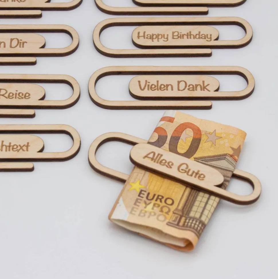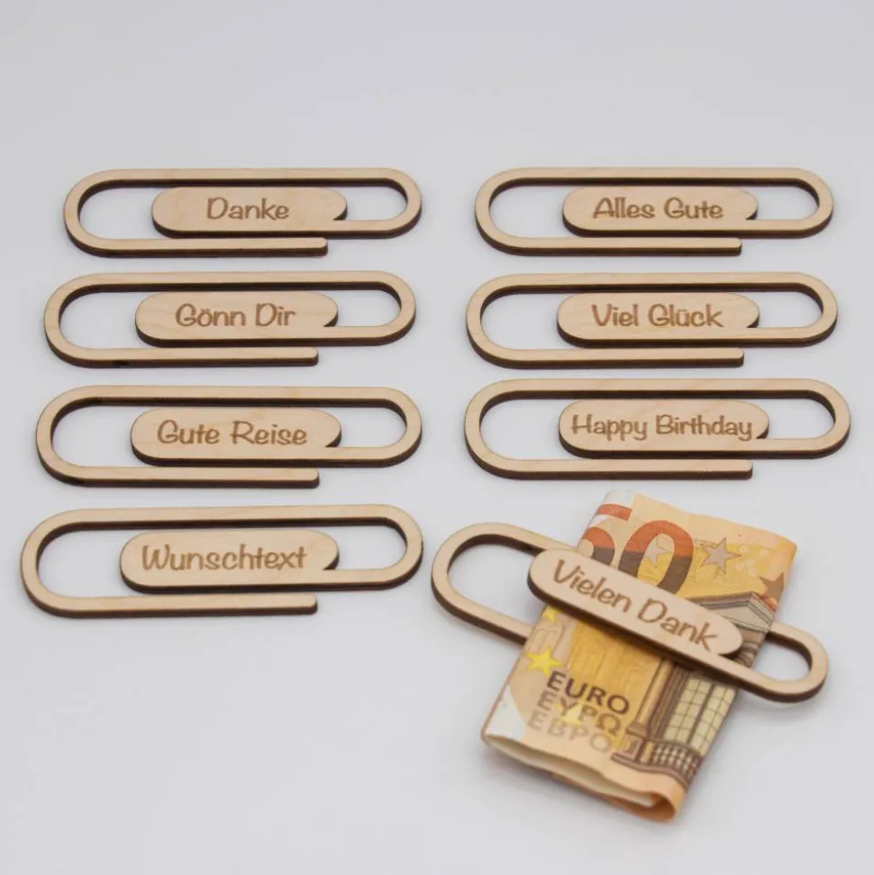 Büroklammer aus Holz zum Geld verschenken, kleines Geldgeschenk