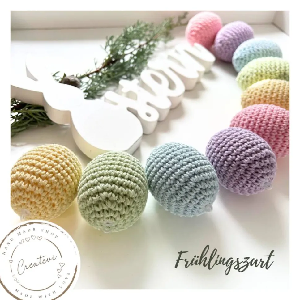 Du kannst die umhäkelten Ostereier vielseitig einsetzen. Sie eignen sich für den Osterstrauch, als Tischdekoration oder als liebevolles Detail im Osternest. Dank ihrer hochwertigen Verarbeitung behalten die gehäkelten Ostereier ihre Form und können nach dem Fest platzsparend aufbewahrt werden. Als nachhaltige Alternative zu kurzlebiger Dekoration unterstützen sie eine bewusste Gestaltung deiner Osterzeit.