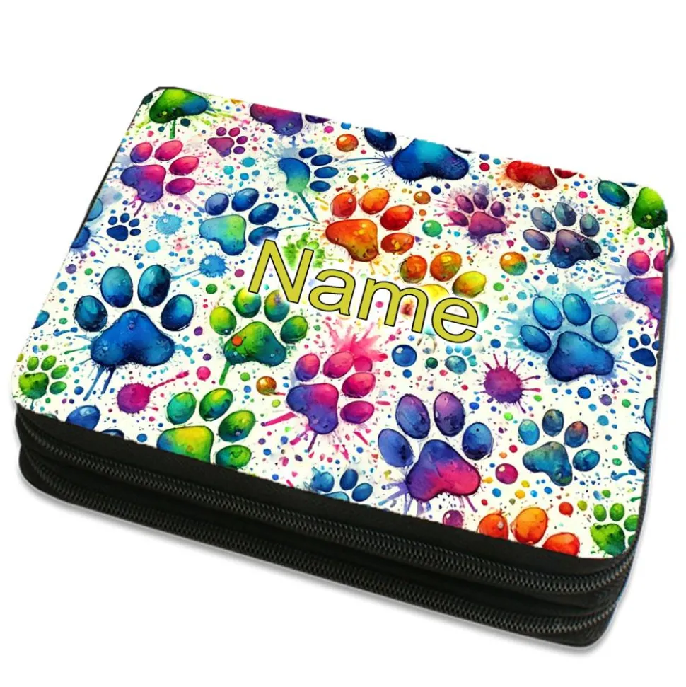 bunte Pfoten Federmäppchen inkl. Inhalt mit Name / personalisierbar
