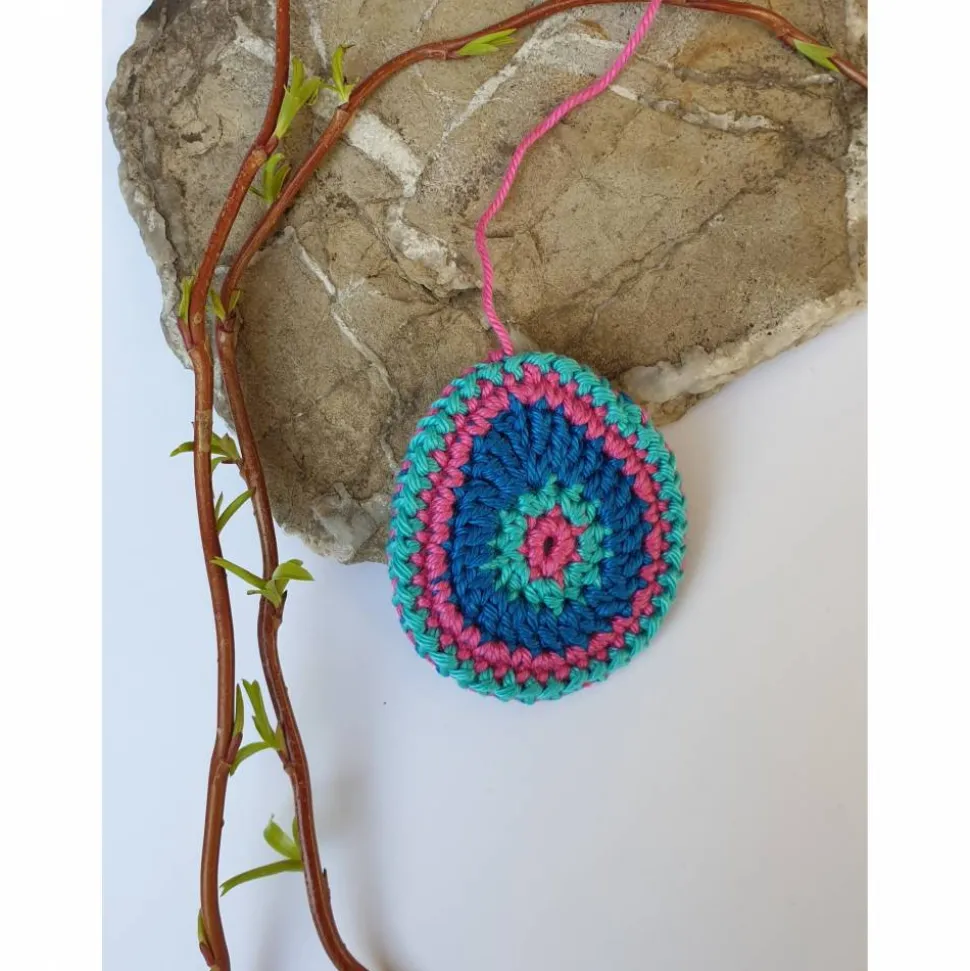 Das Ei ist ein flaches Amigurumi und hat somit 2 Seiten (siehe Fotos).