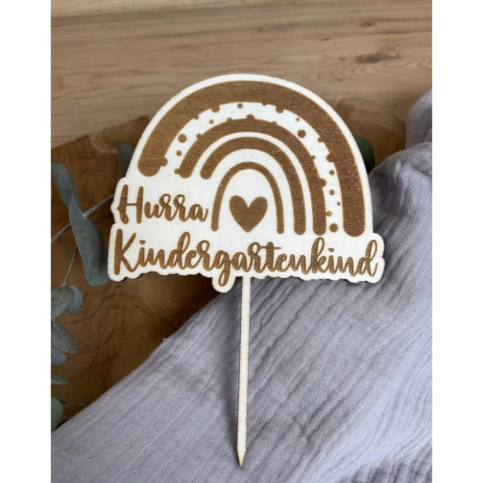 Caketopper „Hurra Kindergartenkind“ / Kuchendeko Regenbogen Kindergarten
