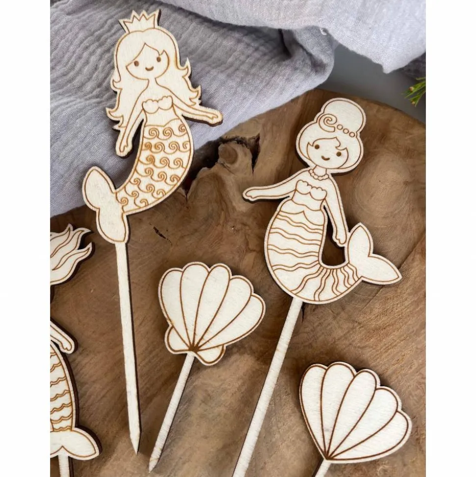Caketopper Meerjungfrauen Kindergeburtstag / Kuchenstecker Cake Topper Mermaid / Muscheln Cupcake