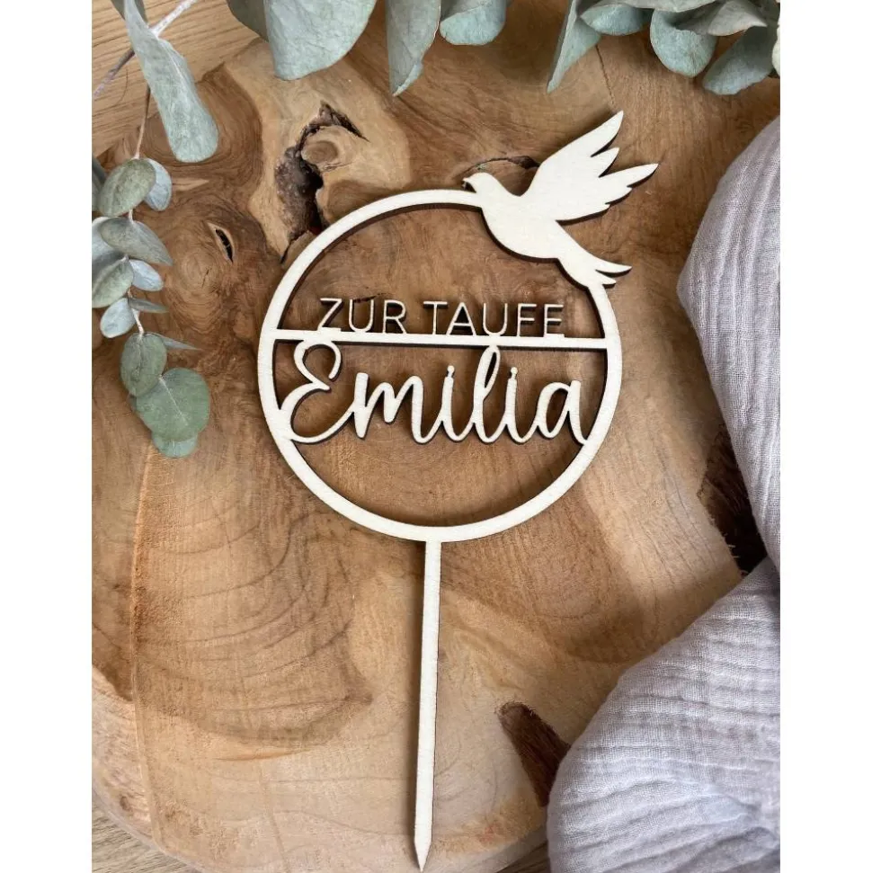 Caketopper zur Taufe mit Namen / Kuchendeko personalisiert mit Taube / Cake Topper Kommunion Konfirmation