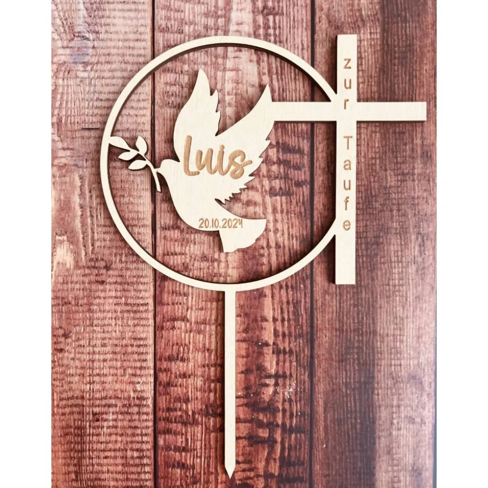 Bei uns erhältst du einen personalisierten und gravierten Caketopper für den Kuchen oder die Torte, zur Taufe deines Kindes.