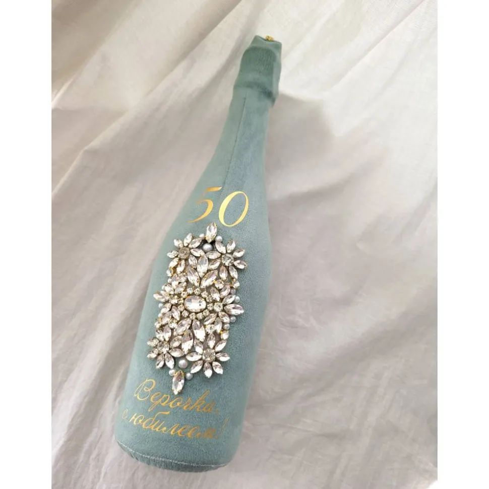 Champagnerflaschenhülle aus Samt mit Kristalle grün Personalisierbares Geschenk für Geburtstag, Hochz