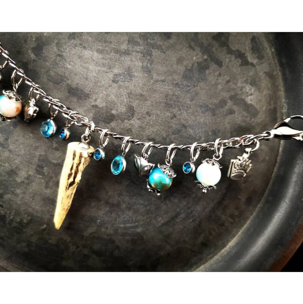 Mit einer Länge von ca. 18,50 cm kann das Charivari problemlos an Schürzen und Mieder angebracht werden, dank des großen, stabilen Karabiners.
