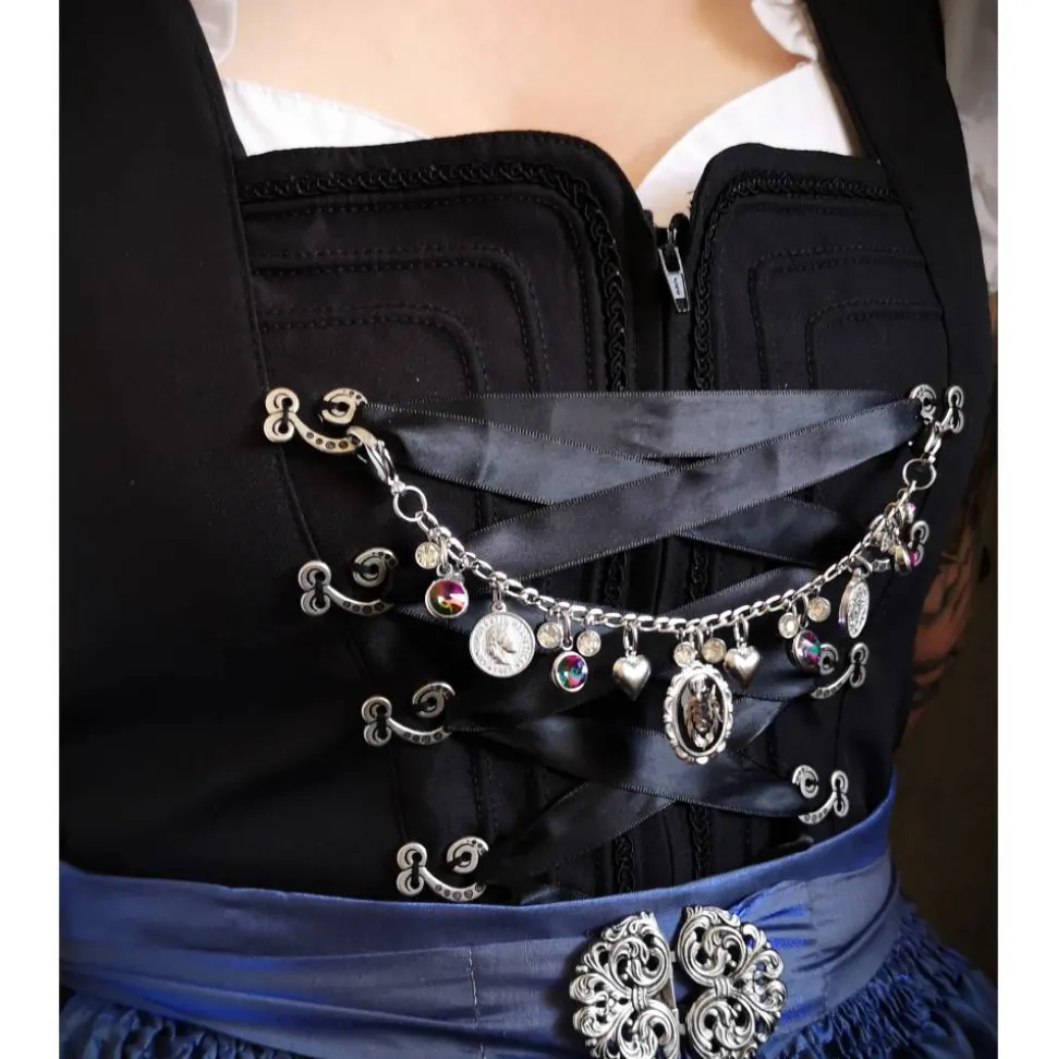 Mit einer Länge von ca. 20 cm kann das Charivari problemlos an Schürzen und Mieder angebracht werden, dank des großen, stabilen Karabiners.