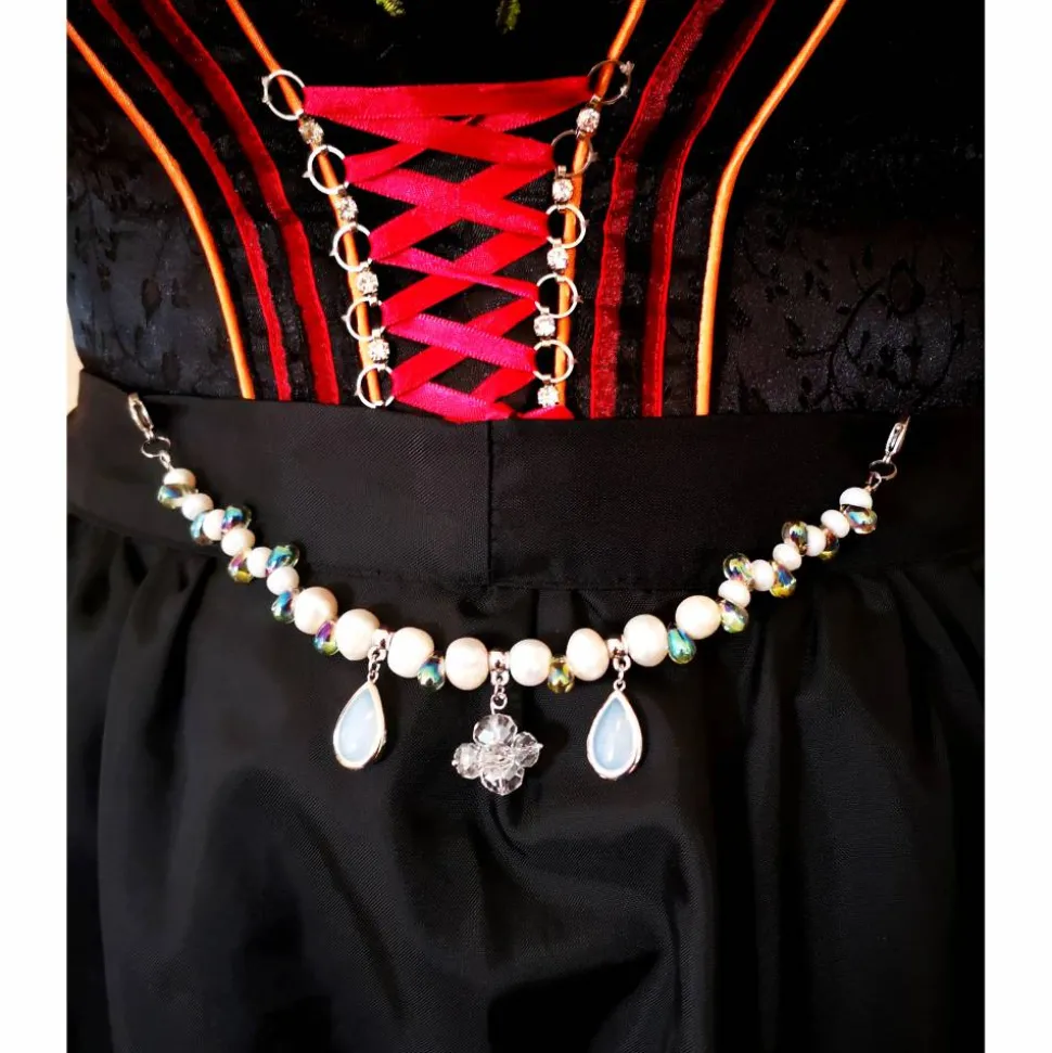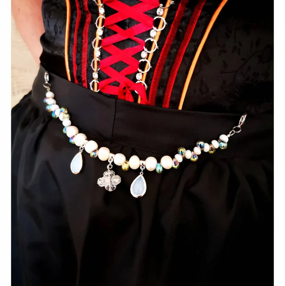 Dieses Charivari kann Schürzen und Mieder (siehe Länge) verzieren. Dank großer, stabiler Edelstahlkarabiner läßt sich das Charivari problemlos einhängen und kann jederzeit gewechselt werden.
